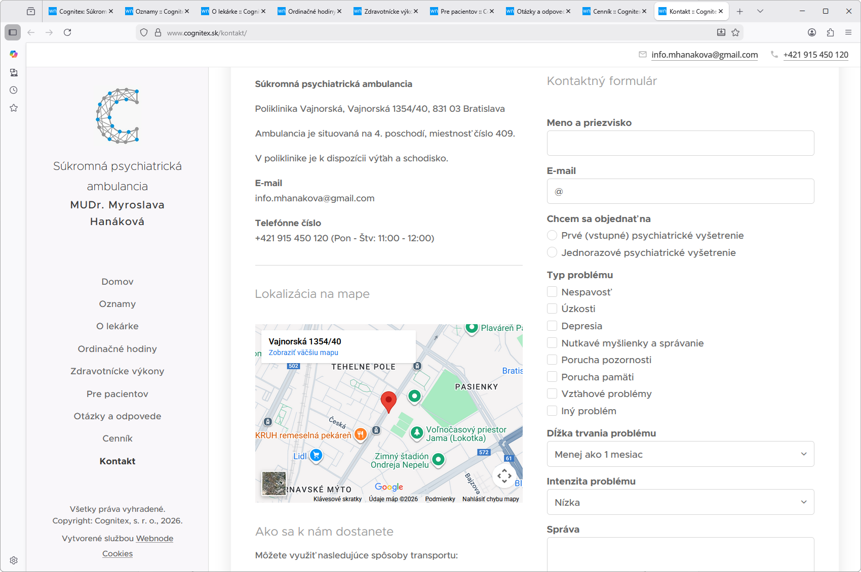 Súkromná psychiatrická ambulancia pre dospelých Cognitex, s. r. o., prijíma nových pacientov.