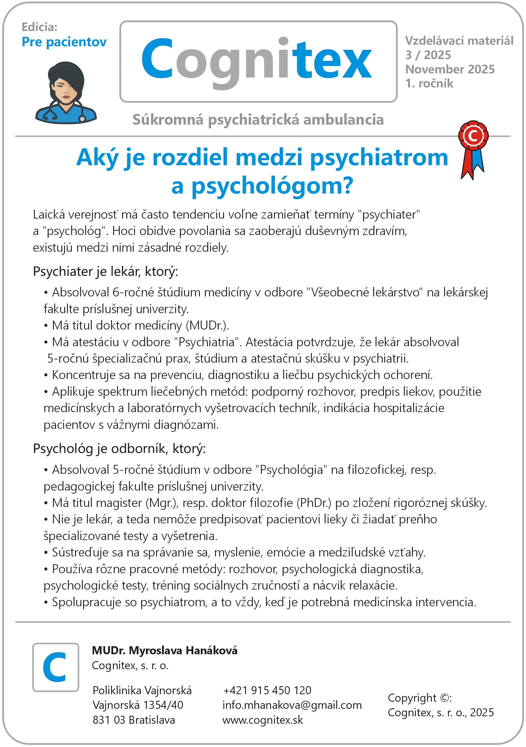 Vzdelávací materiál č. 3 / 2025: Aký je rozdiel medzi psychiatrom a psychológom?