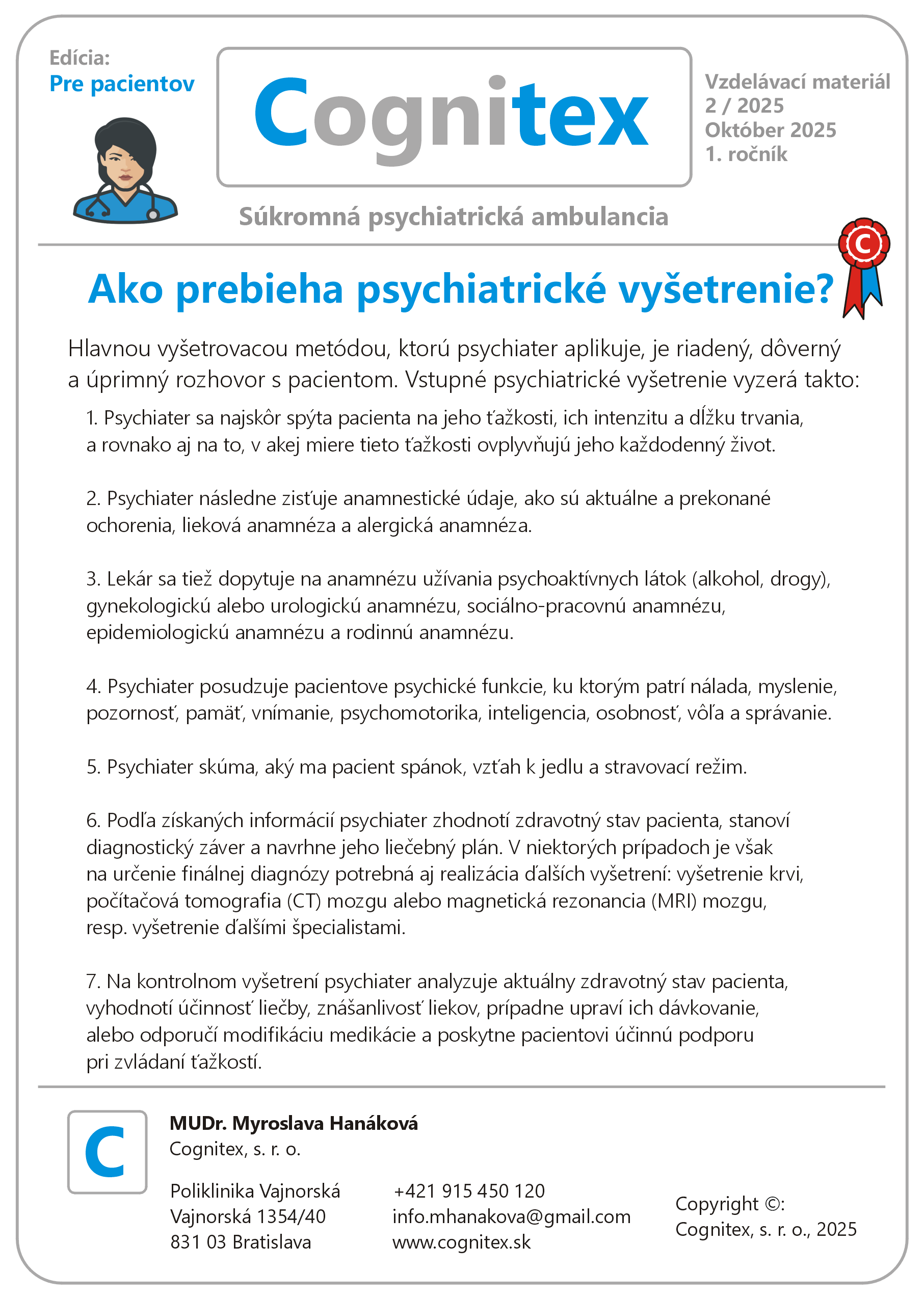 Vzdelávací materiál č. 2 / 2025: Ako prebieha psychiatrické vyšetrenie
